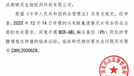 2021年2月9日,赜灵生物收到国家药品监督管理局核准签发的《药物临床试验批准通知书》。经审查,公司用于治疗骨髓纤维化药物马来酸氟诺替尼片符合药品注册的有关要求,获批开展B-AB融合基因(Ph)阴性的骨髓增殖性肿瘤的临床试验!骨髓纤维化是一种由于骨髓造血组织中胶原增生,其纤维组织严重地影响造血功能所引起的一种骨髓增生性疾病。目前该病尚没有确切的国内发病率数据,欧美国家骨髓纤维化发病率约为04-06...